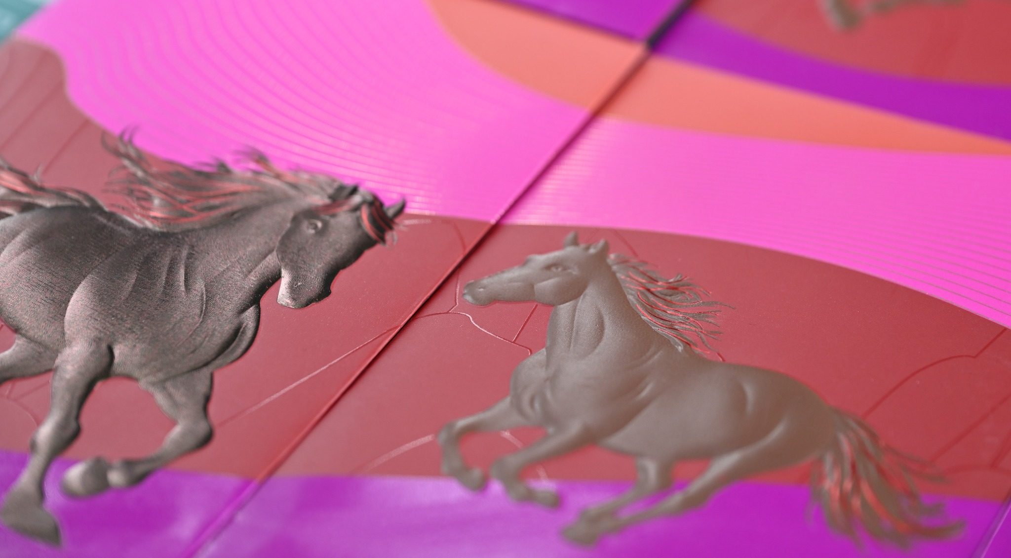 صُنع هذا الظرف الأحمر الرائع لالتقاط روح الحصان الجامحة، وهو يحتفل بعام الحصان بمهارة فنية بارعة. يقفز الحصان المهيب من السطح من خلال مزيج مبتكر من الملمس المنقوش بالراند - وهي تقنية ذات أبعاد تجلب الحياة إلى كل عصب وعرف متدفق، مما يخلق تجربة لمسية "تنطلق من الورق" حقًا.